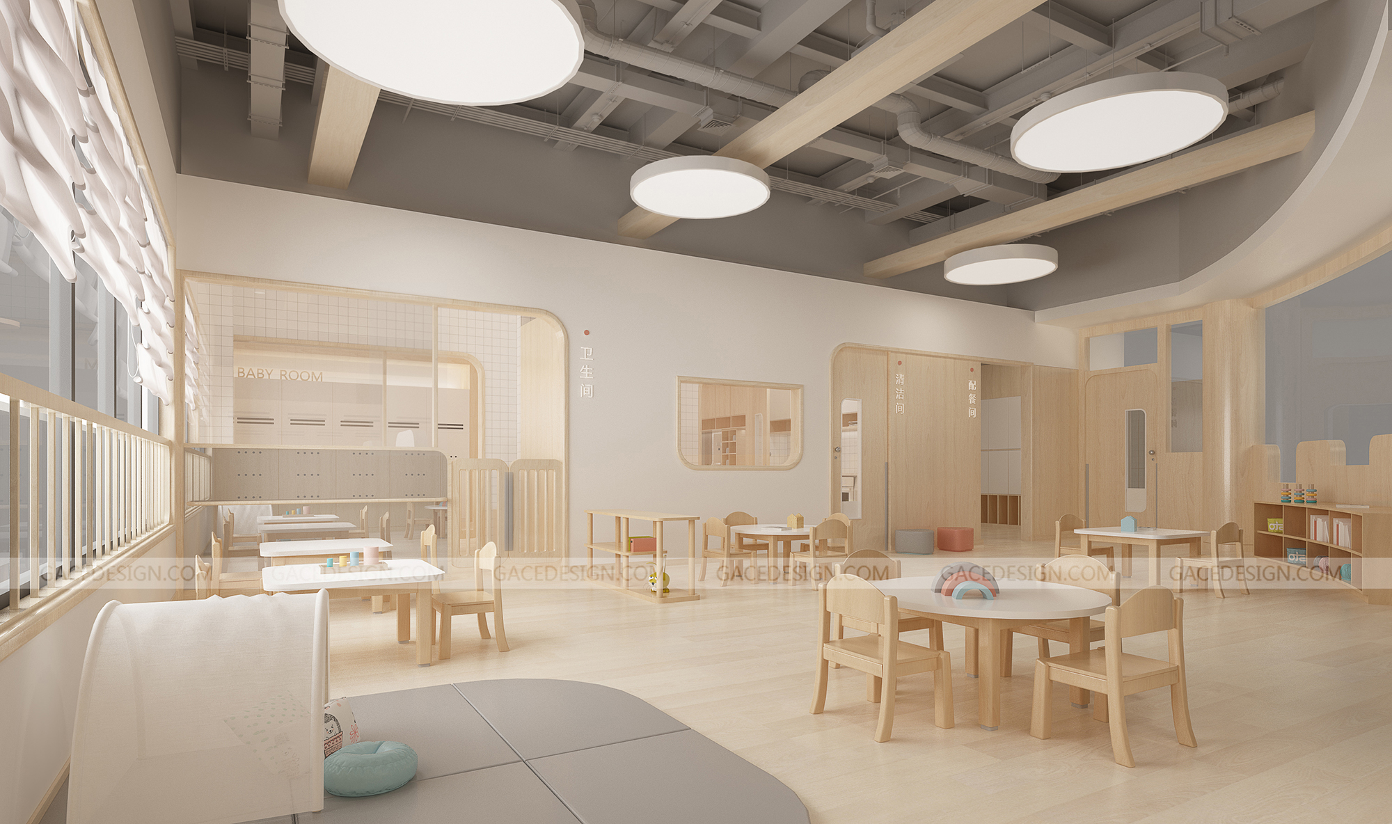 設計概括:這是我們幫啟思頓托育園設計的旗艦店,面積達到1000平以上,作為中山市高標準的示范性托育園,我們在設計之前組織設計師進行跟崗觀察,學習守護型嬰幼兒保育等系列保育書。考慮到保育員在操作層面上的便捷性,我們進行了場景模擬,把操作層面所涉及的柜體以及路徑進行了系統性整理。考慮到嬰幼兒在保育園的心理狀態以及發展心理學和空間敏感,我們定位這個項目是孩子的第二個家。是一家值得爸爸媽媽愿意托付的托育園。
