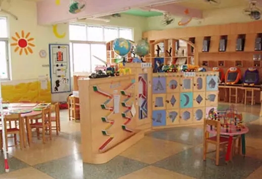 (2)教室的桌子最好是兩人共用的長方型,便于幼兒搬動組合。架子、隔板、地面鋪設物也盡可能移動,使幼兒能夠移動和轉換。