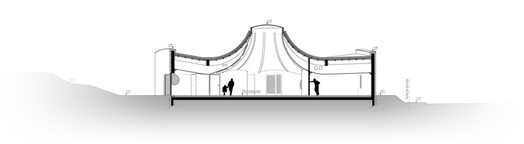 承載內(nèi)部壁是由鋼筋混凝土制成的,并且它們支持的屋頂被彎曲的形狀,大量使用以降低制造成本,膠水層疊木梁用來建造單層防潮膜覆蓋的屋頂。