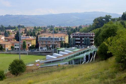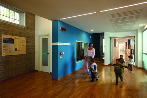 ccd studio設(shè)計(jì)的位于意大利維尼奧拉的Barbapapà幼兒園,是一項(xiàng)舉辦的設(shè)計(jì)競賽。該幼兒園位于城市開發(fā)區(qū)的邊緣地帶的山坡之上,離城市歷史中心并不太遠(yuǎn),它可以容納60個兒童,由4間教室組成。工程的目標(biāo)是達(dá)到可持續(xù)性的要求,這點(diǎn)從建筑的各個方面都可以體現(xiàn)出來,并且建筑本身也將這種可持續(xù)性的價值傳遞給了孩子們。