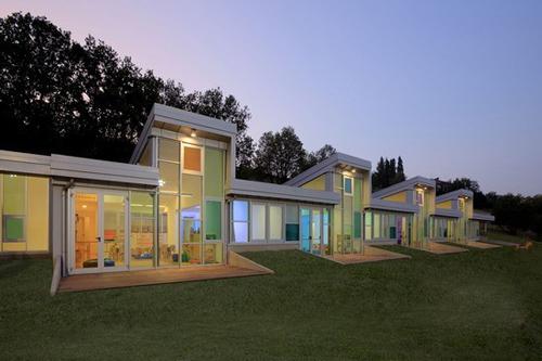 寬大的玻璃窗系統(tǒng)在一天中的不同時候都可以對太陽光線進(jìn)行過濾,以保持住室內(nèi)的熱量。其它的熱源通過兩個不同的設(shè)備來獲得:放置在防水壁裝置中的地?zé)崽筋^和位于地面和熱泵間的熱交換設(shè)備。光電池辦被安裝在屋頂隔間中。雨水被收集進(jìn)特別的水槽之中,用于灌溉和沖洗浴室。顏色,材料和特別的設(shè)計(jì)形狀體現(xiàn)出了所有可持續(xù)性的系統(tǒng),它們同時也體現(xiàn)出了整個建筑的現(xiàn)代感。