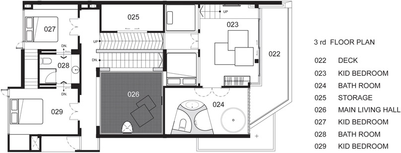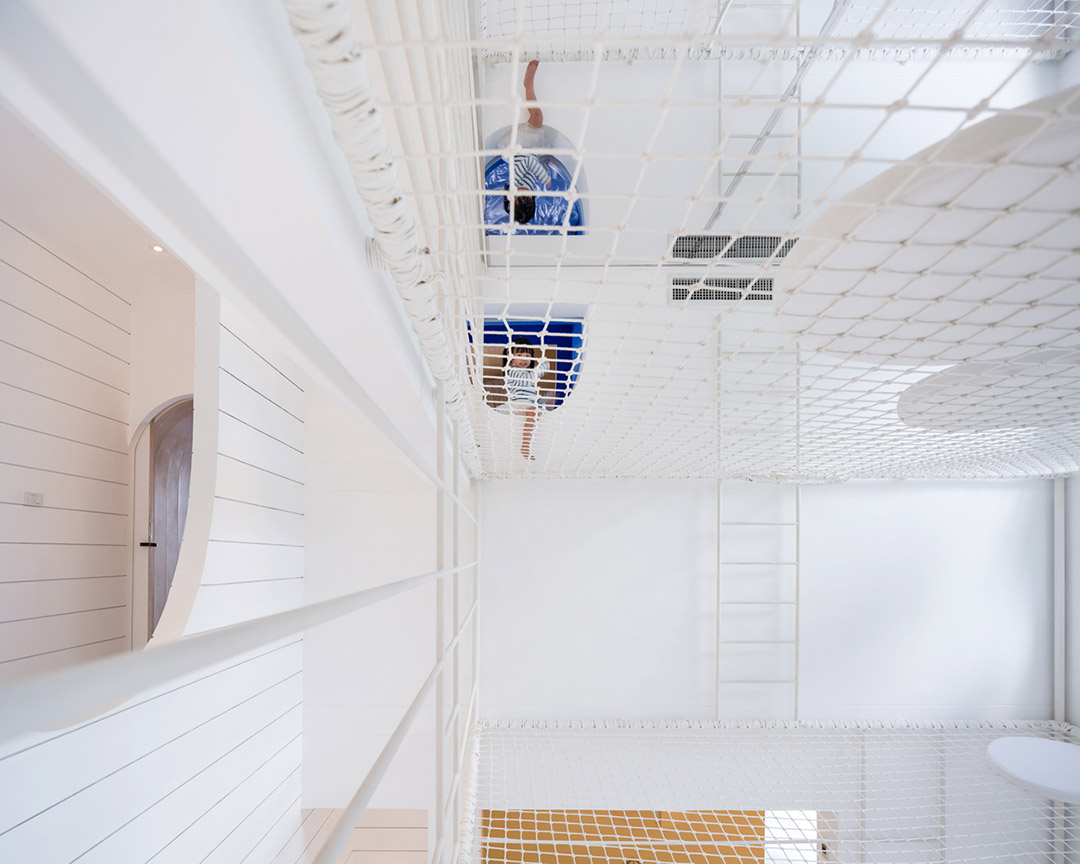 主生活廳為包括祖母在內的每一個家庭成員帶來了愉快的假期時光,這里成為Jerry House最常用和最富生氣的空間。孩子們甚至不愿意睡在臥室,而是將枕頭和被子拿到繩網上來睡覺。他們睡在相當于二層半的第四層繩網上。Jerry House讓孩子們睡在空中的夢想成為現實。