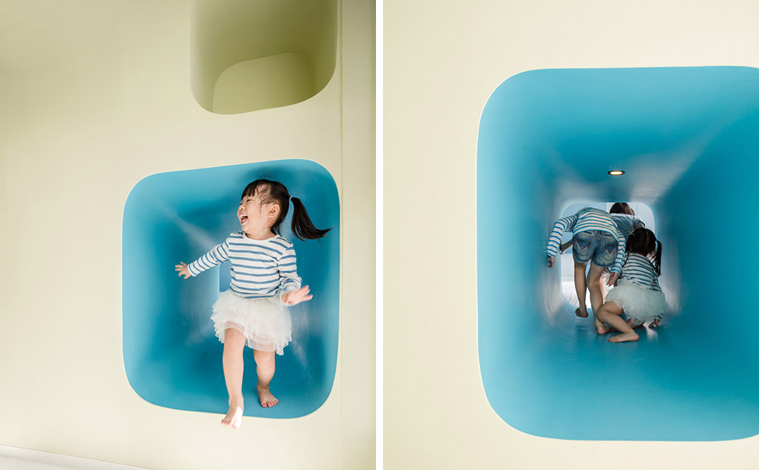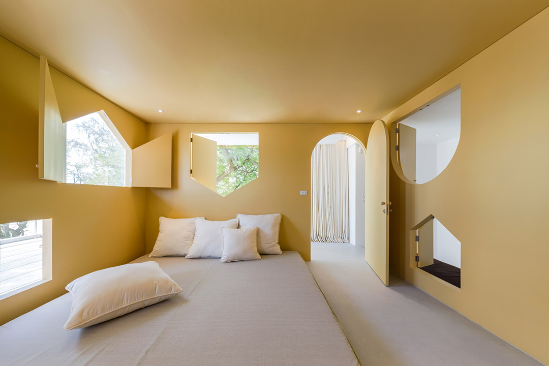 跑、爬、藏、懸掛、甚至下落等身體活動在日常生活中并不常見。Onion將1940年上映的美國動畫片“貓和老鼠”作為該項目室內設計的參照標桿。如果Jerry為自己修建房子的話,很有可能會是一個巨大的奶酪房,里面設有幫助自己躲避Tom追趕的“莫比烏斯圈”逃跑路線。建筑師將該住宅設計成一個深受孩子們喜愛的樂園,讓全家在七巖海灘的假期更有意義。