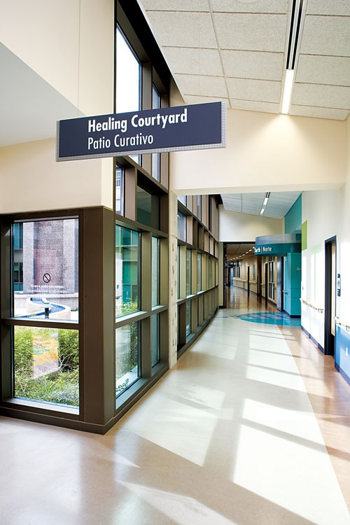 奧斯汀市因致力于推進綠色建筑的實踐活動而聞名于世,這家融合了德州中部社區活動文化的醫院作為700英畝新城發展項目的一部分,位于奧斯汀市前機場 所在地,占地473,000平房英尺,擁有169個床位,整體設計具有獨特的視覺美感,并在很大程度上降低了建筑對周圍環境的消極影響。該醫學中心包括一 個天然氣發電廠,一個自然光照空氣新鮮的庭院,天然景觀和各種環境友好型裝飾物,所有這些都為德州中部地區營造了一個優秀的康復治療中心。中心總裁兼首席 執行官Robert I. Bonar在接受采訪時表示,中心一貫放眼于創建一座世界級的醫療機構,成為第一家得到LEED認證的醫院正是其中的一部分。取得LEED認證的動力并不 單單是環保,因為一家綠色醫院對于病患的康復更具有深遠的影響。