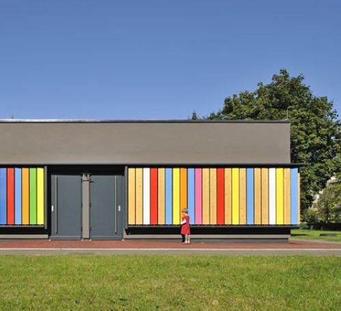 位于斯洛文尼亞的Kekec幼兒園,和世界上所有的幼兒園一樣十分“好色”,但如果只是這樣的話它還不值得我們關(guān)注,這間幼兒園的與眾不同之處在于它有著變色龍一樣的本事,可以瞬間“脫”去色彩繽紛的外衣,變身成一棟平凡無(wú)奇的小木屋。看來(lái)即使是平凡的木板,也終有艷麗轉(zhuǎn)身的一天。