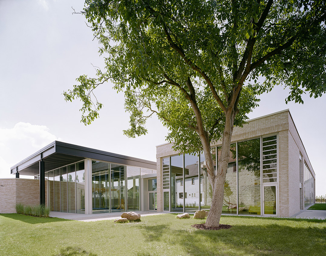 在古老的城墻邊上建有一座幼兒園,這所以混凝土和明黃色搭配的幼兒園高雅而又不失活力,雙翼構(gòu)造環(huán)抱住室外庭院,而大面積的落地玻璃窗讓室外美景滿滿映入眼簾,建筑師在做建筑的時(shí)候也采取了對(duì)歷史的尊重,外觀選擇了磚飾面。