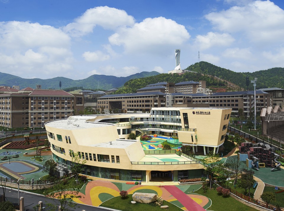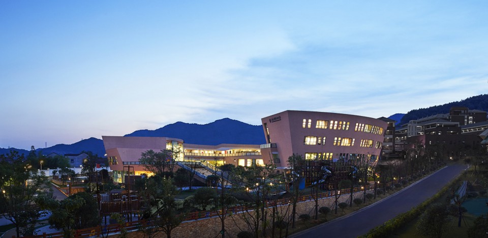 在浙江一所名為海亮國際的幼兒園是一座大型的寄宿制度的幼兒園,其中面積達到10000平方米,園內共分為25個班,能容納五百多名兒童,對孩子們活動安全方面考慮,幼兒園在園內選擇了一個先對平緩的一塊平地,周邊則是分別為初中、小學、體育場館、接待中心等,較為復雜和擁擠。在一個這樣復雜的環境下如何去給孩子們去創造一個具有安全感,符合孩子們心理的歡樂場所,這成為了設計師的主要挑戰。