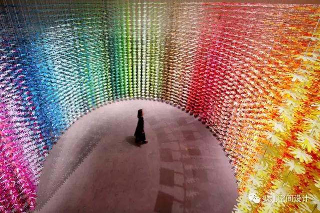 設計師采用了螺旋的形式,將空間變成了一個具有花卉圖案的,充滿了活力的,閃閃發光的五彩世界。游客可以站在其中,周圍的五顏六色包圍著他們。他使用了25,200個花卉圖案用3維網格形式排列,精工株式會社讓他們的客人真正的沉浸在了這個展覽中。