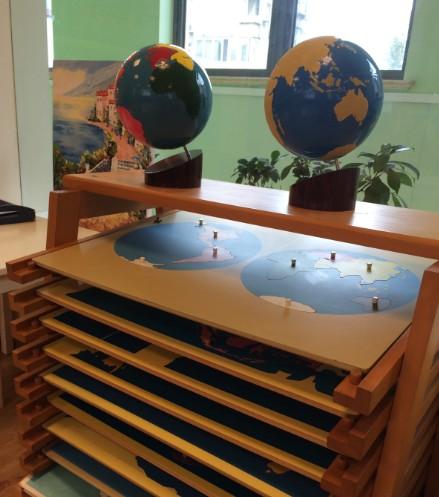 文化區則會有一些文化類的教具,比如世界地圖拼圖,孩子可以通過自己獨特的方式將世界地圖拼起來,在這個過程中了解一些基本知識。