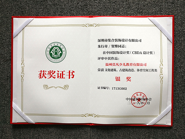 2018年,集合作品“溫州莫凡少兒教育有限公司”在中國裝飾設計獎中獲銀獎